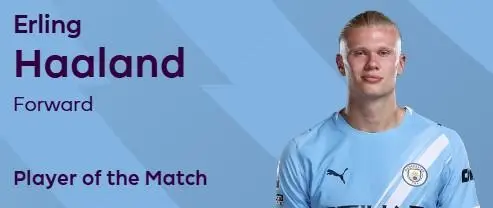 英超官方宣布哈蘭德當選球迷票選本場最佳球員。當選